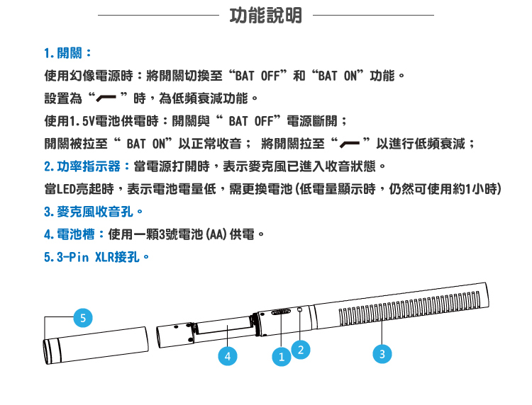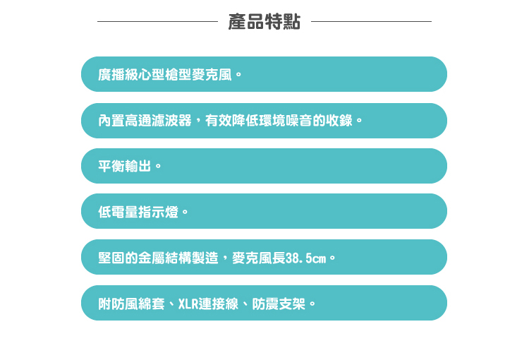 • 堅固的金屬結構製造,麥克風長38.5cm
