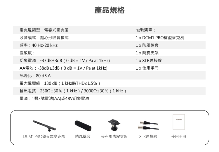• 內置高通濾波器,有效降低環境噪音的收錄
