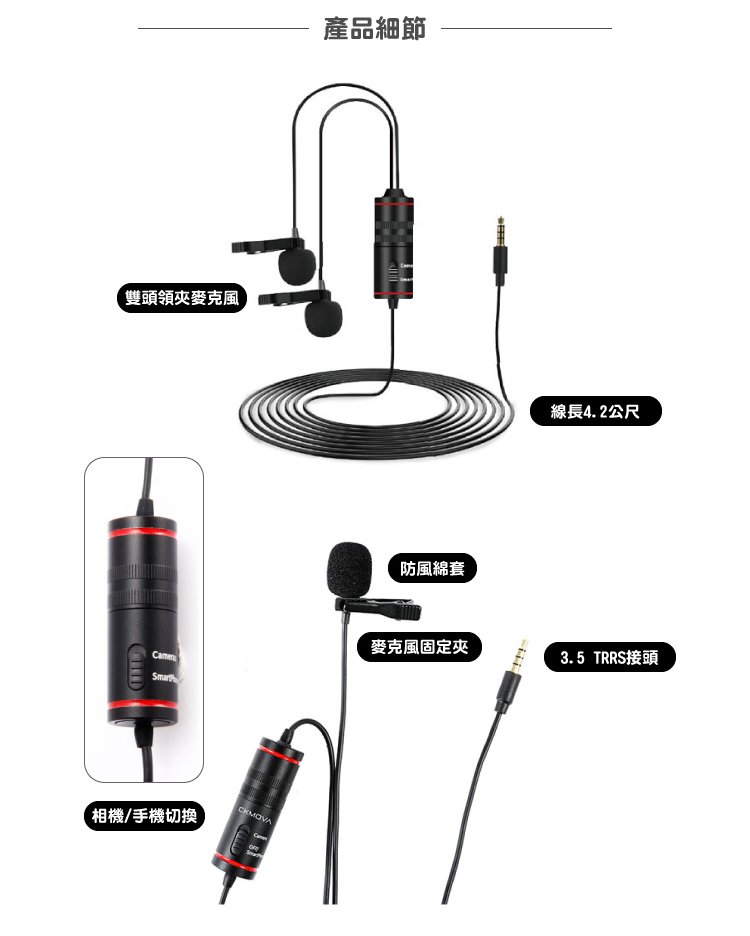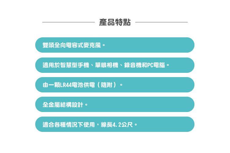 -適用於3.5mm智慧型手機、單眼相機、錄音機和PC電腦。