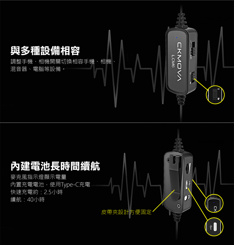 • 設有電量指示燈,內置電池,使用Type-C充電。
