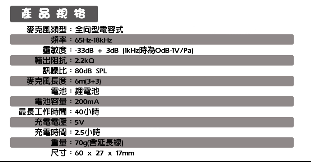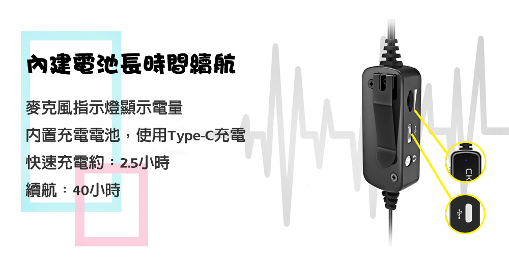 • 設有電量指示燈,內置電池,使用Type-C充電。