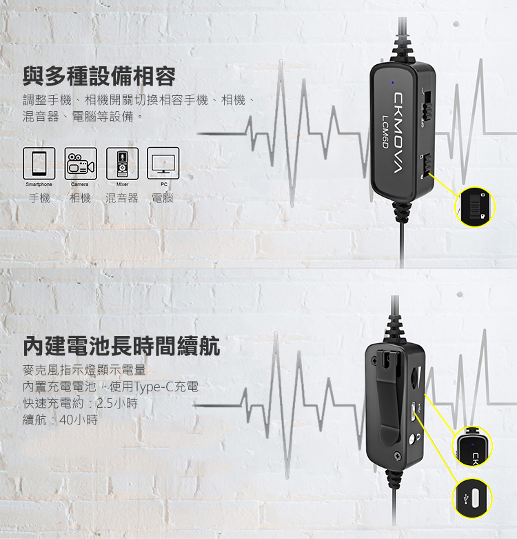 • 設有電量指示燈,內置電池,使用Type-C充電。
