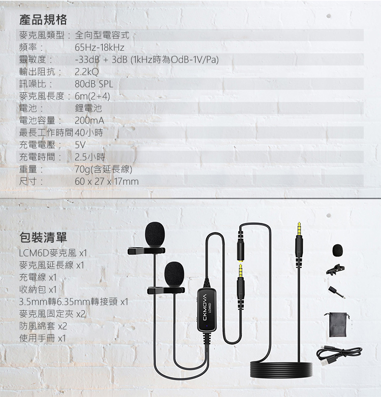 全向電容式雙頭領夾式麥克風(3.5mm)