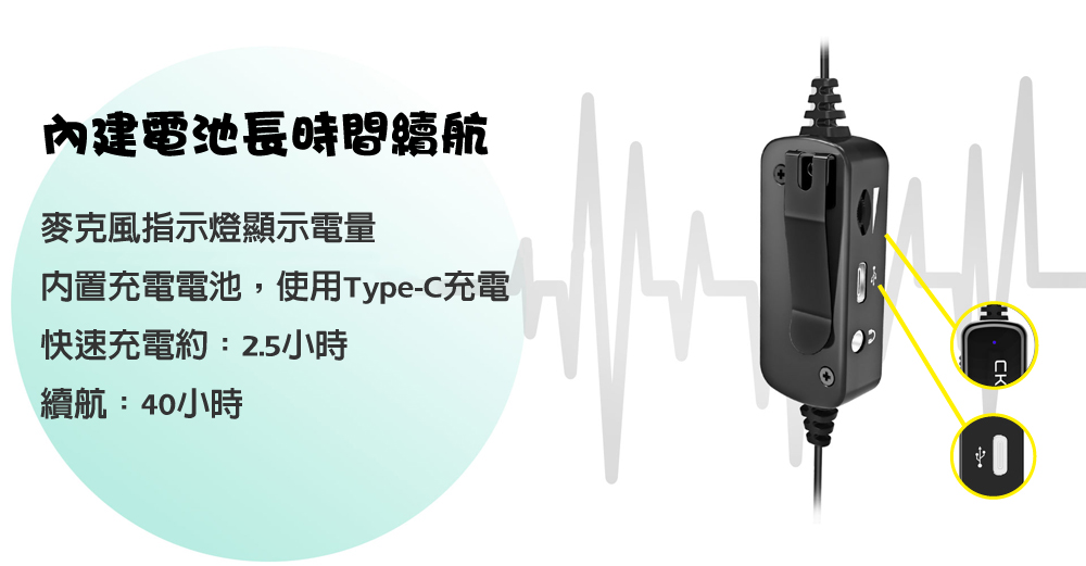 • 設有電量指示燈,內置電池,使用Type-C充電。