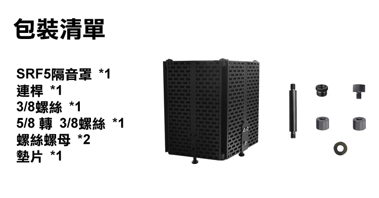 SRF5 SRF5 專業隔音防風罩 -高品質ABS吸音材質 產品特點 •高品質ABS吸音材質•摺疊設計方便收納•多層降噪聲音更清晰•桌面/支架搭配使用 •此處購買https://ppt.cc/f9KKMx