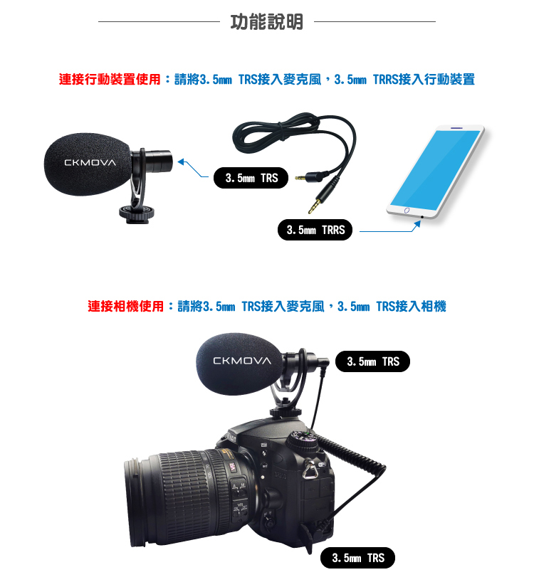 • 附3.5mm TRS轉TRS、TRS轉TRRS轉接線