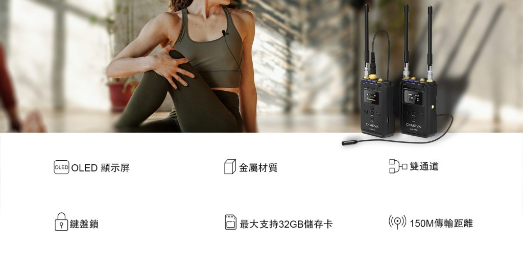獨立錄音筆功能UHF雙通道無線麥克風系統