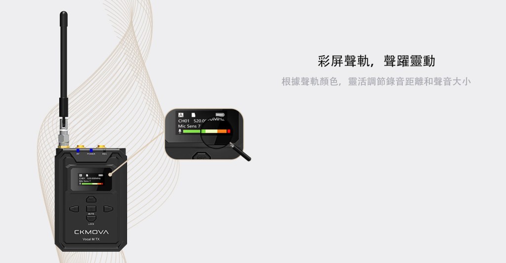 • 依據聲軌顏色調節錄音距離和聲音大~小(紅~綠)