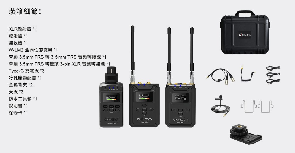 一對二雙通道無線麥克風系統(TX+TLX+RX)