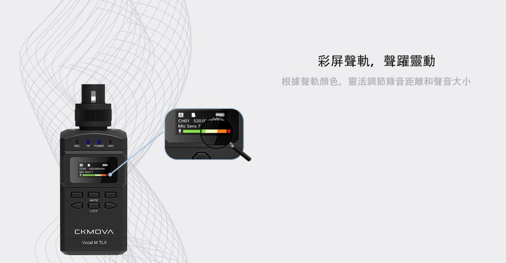 • 依據聲軌顏色調節錄音距離和聲音大~小(紅~綠)